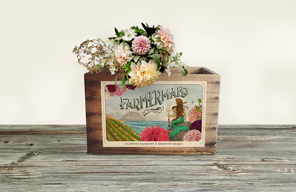 Courtney, the owner of Farmermaid Flowers, has been steadily growing her business and wanted a unique illustration to market her gorgeous flowers (that she grows herself, on her own farm). The goal was to create a timeless piece of art that relates back to the nostalgic labels that used to decorate farmer's crates. The end result is something she continues to use for marketing to grocers, farmer's markets, and connecting with her online community.